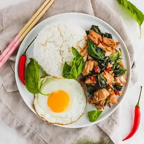 A quintessential Thai curry known for its vibrant green hue and aromatic complexity, blending green chilies, herbs, coconut milk, and various proteins and vegetables for a spicy yet balanced flavor.